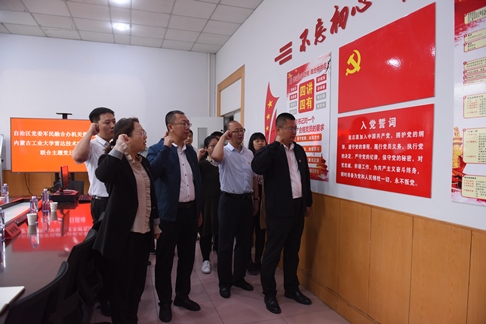 为深入贯彻党的十九大精神,做好“不忘初心、牢记使命”主题教育预热工作,9月10日,信息工程学院雷达技术研究所党支部与自治区党委军民融合办机关第二党支部,联合举办了“听党指挥、融合创新”主题党日活动。通过活动促进学校科研机构与自治区政府在科研攻关、项目推进、人才培训等方面深度合作。校科技处处长刘利强应邀参加此次军民融合主题党日活动。