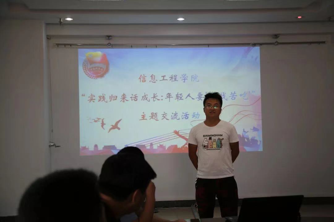 为进一步深化学生知行结合精神,加强学生对“三下乡”实践活动的体会,重拾实践精彩。我院于9月3日晚在电力大楼九楼会议室举行“实践归来话成长:’年轻人要自找苦吃’”主题活动,各分队队员代表到会来分享他们的经验与活动感受。