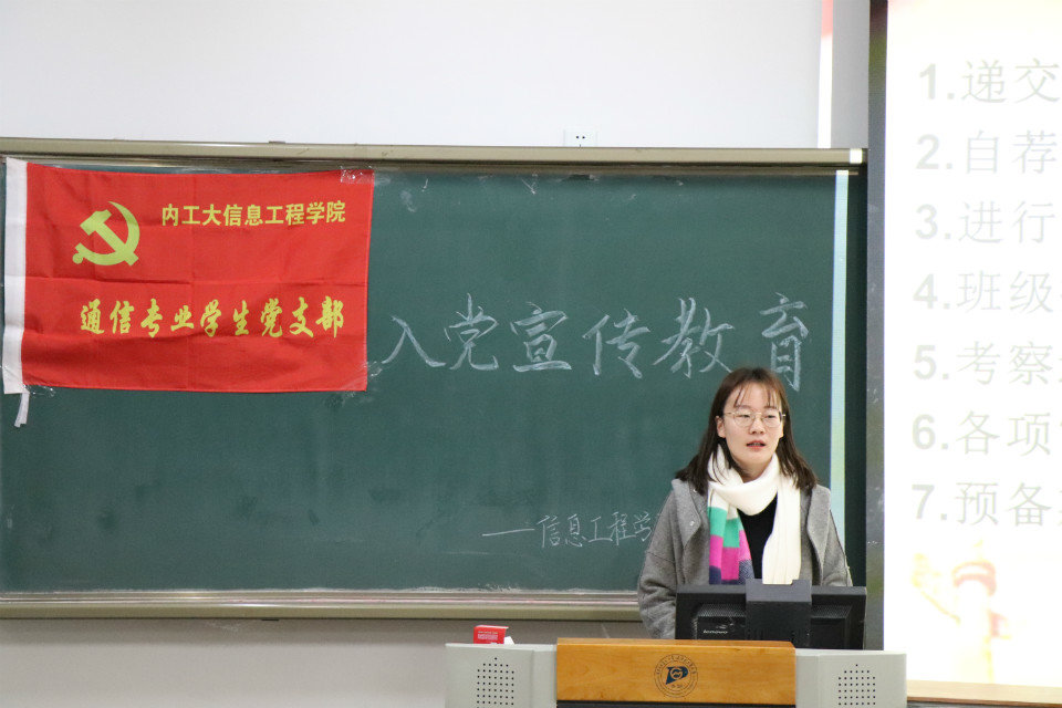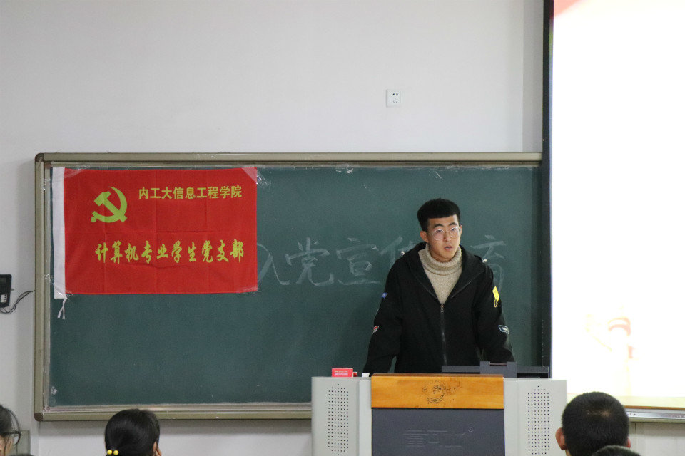 会议上,各学生党支部支委会成员从加强对党的认识、端正入党动机、自觉接受党组织培养考察及如何做一名合格的大学生党员四个方面进行了详细的讲解。讲解中,主要向同学们简述了党的性质、宗旨、原则及党领导中国人民所取得的伟大成就,并着重强调了树立正确入党动机的重要性,详实介绍了大学生发展党员的具体要求,明确讲解了入党程序等。同时,要求同学们在积极入党的过程中要“处理好树立远大理想与过好今天大学生活的关系”、“处理好思想入党和组织入党的关系”。入党是一个神圣的事情,想要入党,一定要做一个勇争上游的人,党是国家和人民的先进代表,想要向党组织靠拢就一定要严格要求自己,希望同学们可以从思想上、行动上提升自己。