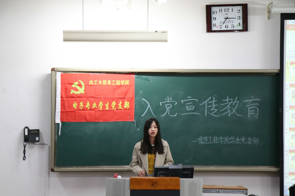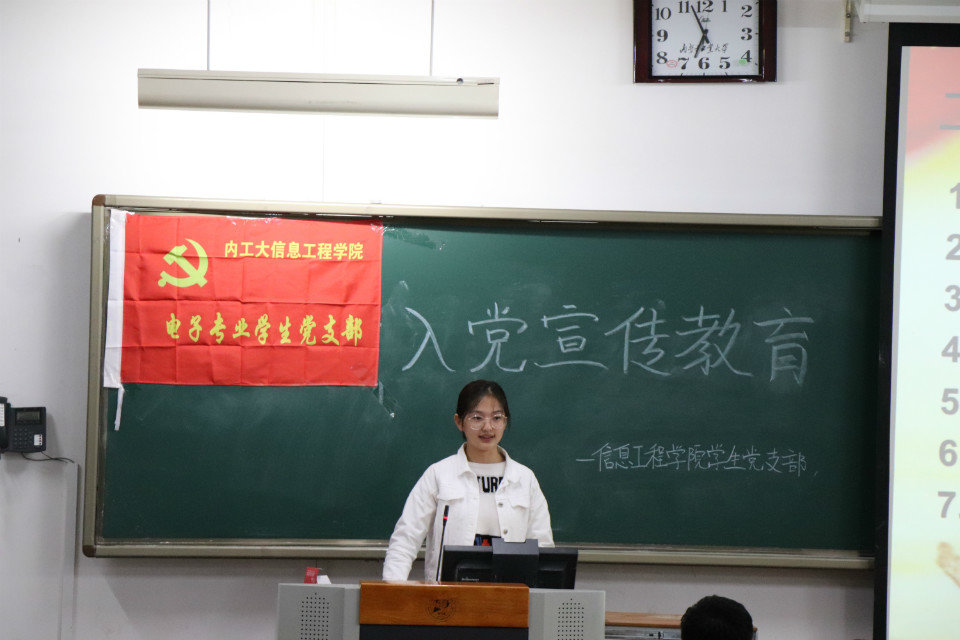 为了让我院2018级同学们更好地了解中国共产党和熟知入党要求及入党程序,2018年10月10日晚七点,由信息工程学院党委主办,学生党支部承办的入党启蒙教育会于教A举行。各学生党支部支委会成员分别向各专业同学们作了讲解。