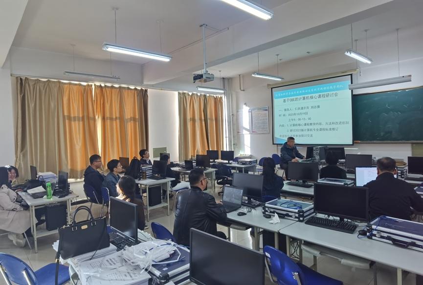2023年10月19日上午9点至12点,基于OBE的计算机核心课程研讨会在格物楼B302成功举行。本次研讨会由仁庆道尔吉和刘志强主持,计算机系全体教师参与了研讨。