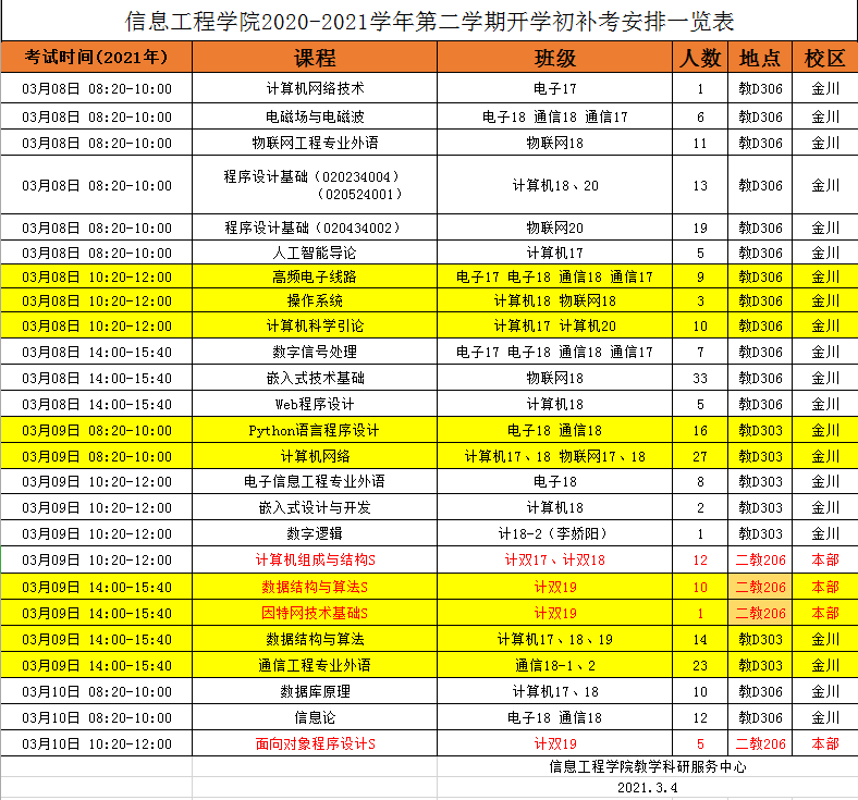 信息工程学院关于2020-2021学年第二学期开学初补考及成绩报送安排的通知