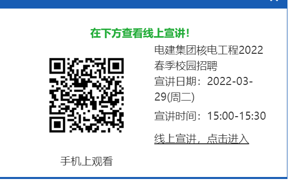 3.QQ群:应聘人员申请加入“中电建核电公司招聘群”,QQ群号:215704745,加群申请格式:毕业学校+专业+姓名。