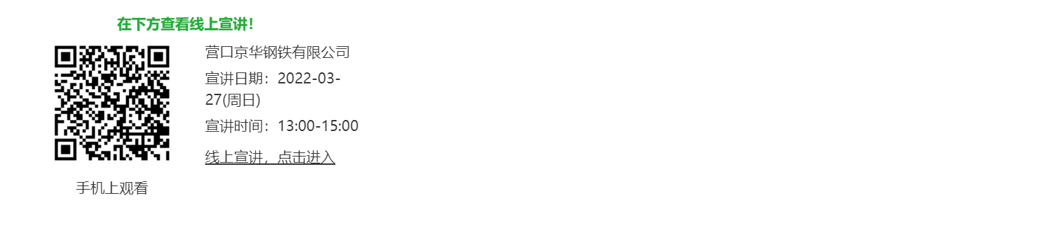 营口京华钢铁有限公司位于辽宁省营口市老边区,注册资金66亿元,占地600多万平方米,现有职工6200余人,各类专业技术人员2000余人。拥有烧结、球团、炼铁、炼钢、轧钢、发电等整套现代化钢铁生产工艺流程及相关配套设施,具备年产745万吨铁、800万吨钢、739万吨材的生产能力,是国内最大的中厚板精品钢生产基地。