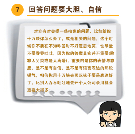 【收好,学习!八条实用的求职经验】又到了找工作的高峰时节了。在这样的时刻里,应届毕业生们以及一些往届生们都在焦头烂额地填着简历以及忙着面试 。特此总结出以下经验,以供同学们参考:
